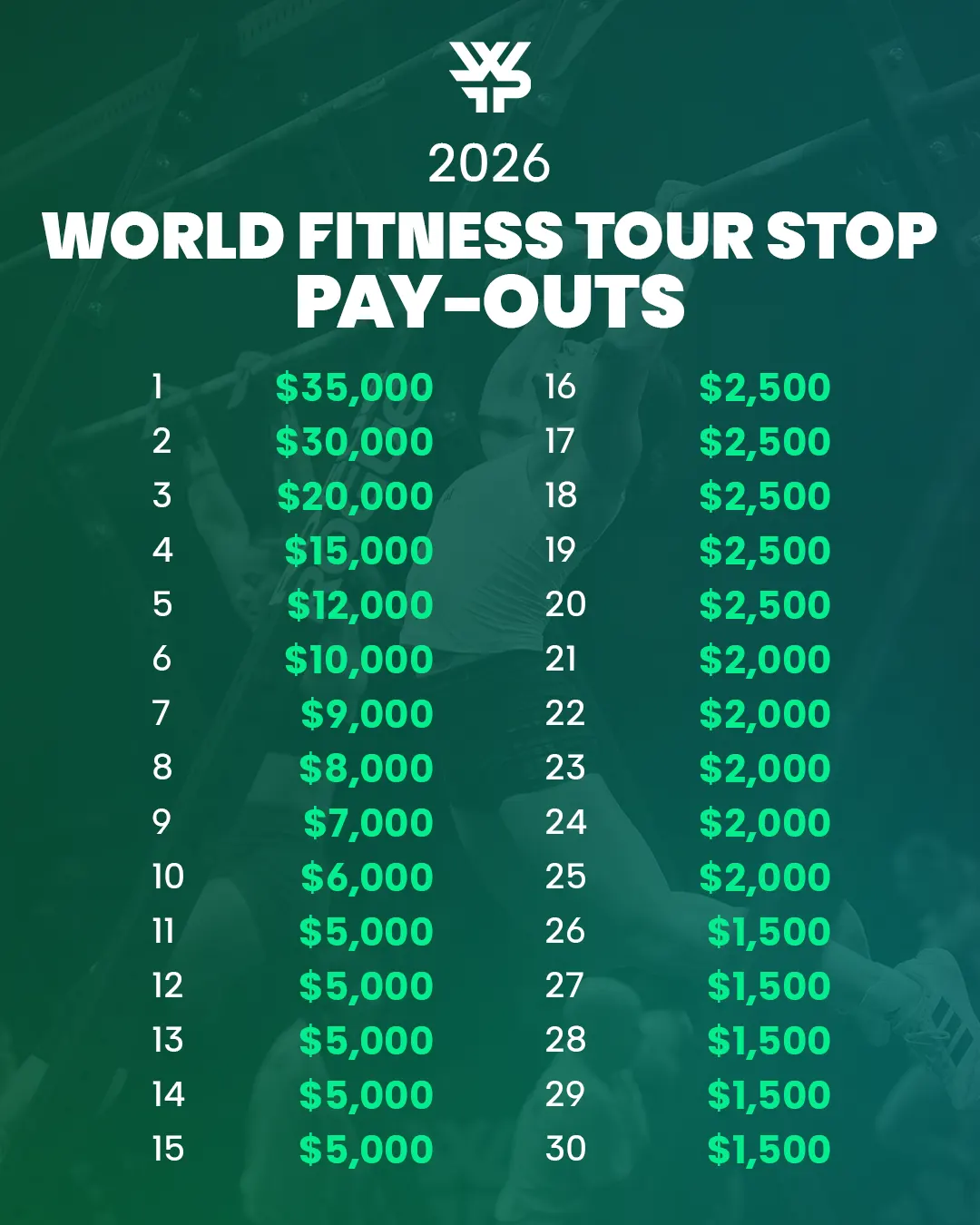 The 2026 Season features increase to the prize purses at Tour Stops and the season long pay out at the World Fitness Finals.